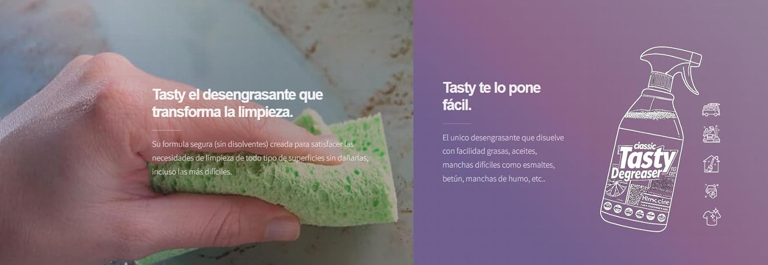 - ✔️ Tasty de 5 litros del óptimo limpiador para tu hogar: desengrasante, quitamanchas y multiusos en un solo bote. Dejate sorprender por los grandes resultados de el desengrante.